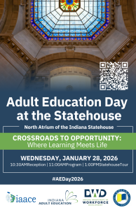Each year, Adult Education Day at the Indiana Statehouse gives us something truly special: the opportunity to come together as a community to educate, celebrate, and advocate for adult education across our state. This day matters—not just for what we do, but for what it represents. Adult education in Indiana changes lives every single day. From helping adults earn their high school equivalency, to building English language skills, to supporting workforce readiness and family stability—our work strengthens individuals, communities, and Indiana’s future. Adult Education Day is our chance to make sure that story is heard clearly and proudly. This year, we are